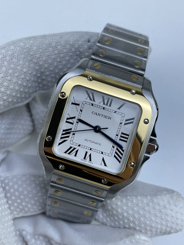 (준비완료/특급배송)NO.3225/BV공장 까르띠에 산토스 2018 미디움 스틸 옐로우골드콤비 화이트다이얼 스마트링크 브슬 35MM